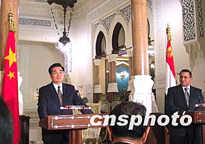 中新網(wǎng)開羅1月29日電(記者齊彬)當(dāng)?shù)貢r(shí)間二十九日晚,正在埃及進(jìn)行國事訪問的中國國家主席胡錦濤與埃及總統(tǒng)穆巴拉克舉行了會(huì)談。隨后,兩國元首共同會(huì)見記者并回答了提問。