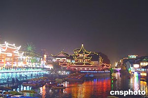 圖:夜色籠罩下的夫子廟秦淮河畔流光溢彩