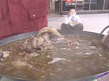 據(jù)臺(tái)灣媒體報(bào)道,天冷正是吃姜母鴨的最佳時(shí)節(jié),但云林日前傳出鴨只傳染禽流感疫情,不少民眾心生恐懼,連姜母鴨業(yè)者都遭到池魚之殃,生意一落千丈。目前云林業(yè)者煮了一鍋一鍋的姜母鴨,免費(fèi)請(qǐng)大家吃,借著縣長(zhǎng)的大力促銷,希望走出禽流感的陰霾。