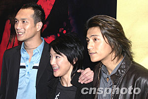 2月5日下午,電影《戀愛中的寶貝》在北京舉行首映新聞發(fā)布會。這部影片融合了中國電影第五代最前衛(wèi)的藝術思考與風格創(chuàng)新。正式放映之前就獲得包括威尼斯電影節(jié)、柏林電影節(jié)、墨爾本電影節(jié)、意大利遠東電影節(jié)、香港電影節(jié)等各大電影節(jié)的邀請。被稱為中國內地2004年最值得期待的第一部國產大片。圖為影片的三名主要演員:黃覺、周迅、陳坤(從左到右)。作者:高遠