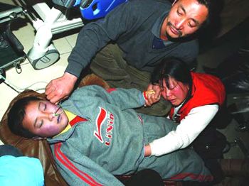 昨晚23時(shí)10分,一名已在密云縣醫(yī)院里昏迷了3個(gè)多小時(shí)的男孩開(kāi)始接受急救。他的父母早已經(jīng)心急如焚。 新京報(bào)圖片