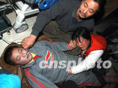 2004年2月5日晚間,在北京密云縣第二屆迎春燈展的第六天,因一觀燈游人在公園橋上跌倒,引起身后游人擁擠,造成踩死擠傷游人特大惡性事故,37人死亡,24人受傷。圖為兩名家長(zhǎng)焦急地守護(hù)在接受搶救的受傷孩子身旁。作者:徐萬(wàn)濤