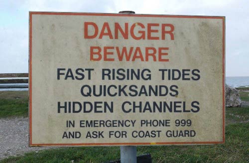 圖:莫克姆灣海灘豎起一塊警示危險的標牌