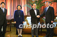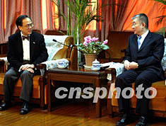 由香港政務司司長曾蔭權(quán)率領(lǐng)的政制發(fā)展專責小組,二月九日上午與國務院港澳事務辦公室副主任徐澤(右)會面。中新社記者:鄭萍萍