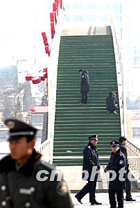 二月九日,北京有關(guān)專家在元宵燈展發(fā)生特大傷亡事故的密云縣密虹公園彩虹橋上進(jìn)一步展開(kāi)調(diào)查。中新社記者:盛佳鵬