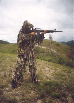 我記得教官在訓(xùn)練前曾說過:“子彈只找不長眼的人!毕氲竭@里,我采取聲東擊西的戰(zhàn)術(shù),隨手撿起一塊石頭,朝我相反的方向扔去,爾后乘機迅速滾進眼前一條戰(zhàn)壕掩體內(nèi),繼續(xù)前進。當(dāng)“守敵”再次發(fā)現(xiàn)我的行蹤時,我又用一根樹枝挑起帽子,隱真示假、吸引火力,突然轉(zhuǎn)移。接敵時,我冒著火光沖天的爆炸,時而快速通過獨木橋,時而匍匐穿過鐵絲網(wǎng),時而快速繞過雷場區(qū),終于在“守敵”布置的天羅地網(wǎng)中死里逃生。然而,當(dāng)我出其不意地繞到“守敵”背后,大聲喊道:“不許動,繳槍不殺!”時,只見那些蒙面“守敵”,紛紛扭過頭,不是舉手投降,而是向我伸出了大拇指。正當(dāng)我納悶時,他們紛紛卸下面紗,這時我才發(fā)現(xiàn)眼前的“守敵”,竟是與自己朝夕相處的教官、軍曹和勤務(wù)兵。
