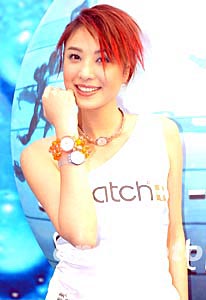 歌星鄭希怡2月12日在香港出席品牌SWATCH 2004春夏腕表系列發(fā)布會(huì),鄭希怡為SWATCH展示新系列腕表。作者:鄧慶樂(lè)