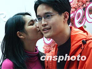 組圖:香港舉行"情侶體驗(yàn)情人節(jié)之吻"活動