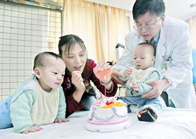去年2月14日,全球首位“非典媽媽”在中山二院冒險產(chǎn)下一對雙胞胎弟兄,兩周后母親康復(fù),孩子并未感染。但雙胞胎因早產(chǎn)兩個月,體重低于正常兒并出現(xiàn)運動發(fā)育遲緩,必須接受康復(fù)訓(xùn)練。一年過去了,這對“難兄難弟”到底怎樣了呢?