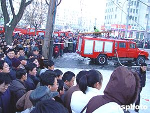 吉林市中百商廈位于吉林市解放大路與長春路交匯處,共有五層樓。商廈的第一層和第二層是商場,第三層是洗浴中心,第四層是臺球廳,第五層是歌舞廳。起火地點在商場二層。