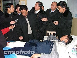 在傷者呂建國的床前,省領導關(guān)切地詢問了他的傷情,并請他安心養(yǎng)傷。省領導叮囑醫(yī)院方面,要選派最好的醫(yī)護人員、用最好的藥品,全力以赴,不惜一切代價搶救傷員。技術(shù)力量和藥品方面如有缺乏,省里立即調(diào)配。