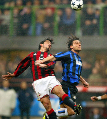 本場比賽,AC米蘭隊隊長馬爾蒂尼因禁賽未能上場,卡福擔當防守重任。AC米蘭隊開局打得不錯,但首先破門得分的卻是國米隊。塞黑球員斯坦科維奇發(fā)出的角球直接飛入球門遠角。兩分鐘后扎內(nèi)蒂25米外起腳勁射破門。上半場國米隊已經(jīng)確立了兩球的優(yōu)勢,看到了勝利的曙光。