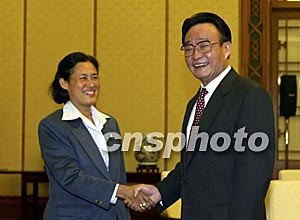 全國人大常委會(huì)委員長吳邦國二十七日在北京會(huì)見泰國公主詩琳通。中新社記者:滿會(huì)喬