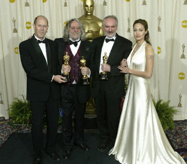 《指環(huán)王3:王者回歸》獲最佳美術(shù)指導獎,安吉麗娜·朱莉為三位美術(shù)指導頒獎。