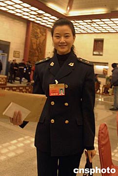 三月二日下午,解放軍海軍著名歌唱家宋祖英到北京大觀園駐地報到,準備出席三月三日在北京召開的全國政協十屆二次會議。中新社記者:張勤