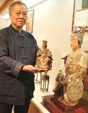 據(jù)臺灣媒體報道,這些神像的收藏者董振雄是兩岸鉆研媽祖文化的少數(shù)專家之一。他長久以來在兩岸三地往來旅游、考察,這項“歷代媽祖神像展”展出的70尊媽祖神像,是董振雄收藏的一半而已。