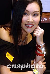 勞倫斯珠寶首飾公司三月三日在香港舉行的國際珠寶展上,首度推出全新ELINI腕表系列產(chǎn)品。圖為香港名模展示新款腕表系列產(chǎn)品。作者:錢興強(qiáng)