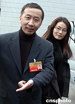 全國(guó)政協(xié)委員、著名導(dǎo)演馮小寧、演員潘虹,三月在北京參加全國(guó)政協(xié)十屆二次會(huì)議。中新社記者:張宇