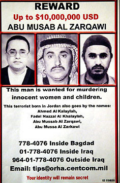 今年2月,駐伊美軍向公眾發(fā)布了一封截取的信件,這封信是由扎卡維親筆寫給“基地”領(lǐng)導(dǎo)人的,其中詳細(xì)記載了6月30日權(quán)力移交前所發(fā)動襲擊的具體計(jì)劃。美國官員聲稱,扎卡維涉嫌參與并策劃了今年在伊拉克發(fā)生的多起自殺性爆炸事件。