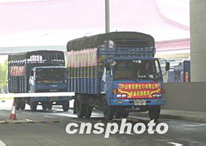 圖為裝載著禽類產品的運輸車輛通過澳門關閘。