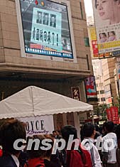 香港立法會(huì)議員李柱銘等人三月七日從美國(guó)返港,眾多市民高舉標(biāo)語(yǔ)在機(jī)場(chǎng)示威抨擊,反對(duì)李柱明赴美出席聽(tīng)證會(huì)。圖為在時(shí)代廣場(chǎng)眾多市民觀看熒屏播放的有關(guān)新聞。作者:錢興強(qiáng)