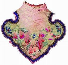 潘教授介紹說,古代內(nèi)衣“奧秘?zé)o窮":“褻衣”、“心衣”、“寶襪”、“抹胸”、“主腰”、“肚兜”,內(nèi)衣的名稱不下幾十種;從長方形、菱形、三角形、半圓形到優(yōu)雅的倒花蕾形、吉祥的“如意”形,古代內(nèi)衣的款式之多也遠不是現(xiàn)代文胸可敵。