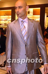 意大利著名男裝品牌ERMEGILdO ZEGNA三月九日在香港舉行旗艦店開幕儀式,該品牌是享譽國際的高級男裝品牌,包括西裝和外套、運動服飾、休閑裝及各種配飾,圖為模特展示該品牌新款服飾。中新社記者:錢興強