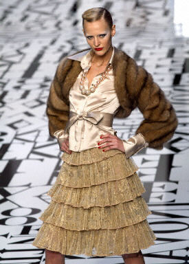 在巴黎2004/2005秋冬時裝周上,模特展示設(shè)計師新款時尚秋冬女裝。