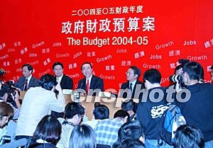 圖:香港財長唐英年發(fā)表首份財政預(yù)算案