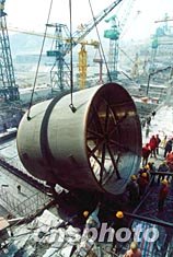 三峽工程右岸排沙孔4號排沙管一個重達(dá)15.4噸的首節(jié)排沙管,3月10日成功吊裝就位,這標(biāo)志三期右岸排沙管安裝工程拉開序幕。4號排沙管由不銹鋼復(fù)合鋼板制成,有37個安裝節(jié),管口內(nèi)徑5米,總長127.57米。三峽的右岸排沙管共8條,其主要作用是在長江汛期和洪水期排泄庫區(qū)泥沙。作者:孫榮剛
