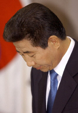 3月12日,韓國國會以193票對2票通過彈劾總統(tǒng)動議案。如果此次投票有效,盧武鉉將成為韓國歷史上首位遭彈劾的總統(tǒng)。圖為11日盧武鉉舉行電視新聞發(fā)布會,并向全國人民鞠躬。