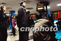 中國(guó)銀行首席新聞發(fā)言人王兆文近日透露的中國(guó)銀行計(jì)劃明年整體上市的消息為中國(guó)股市在春季運(yùn)作帶來(lái)活躍氣息。三月十二日,北京股民在一家證券營(yíng)業(yè)部觀察中國(guó)滬深股市大盤和個(gè)股的新變化。當(dāng)日滬深股市走出了小幅振蕩的走勢(shì)。中新社記者:鄒憲