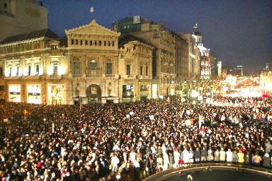 盡管天下著雨,馬德里市中心有8個(gè)車(chē)道的大路仍然擠滿了人群,西班牙政界高層人士、王室成員和許多外國(guó)要人都參加了這次反恐怖示威。