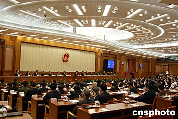 十屆全國(guó)人大二次會(huì)議主席團(tuán)今天下午舉行第三次會(huì)議,主席團(tuán)常務(wù)主席吳邦國(guó)主持會(huì)議。按照大會(huì)議程,這是本次人代會(huì)的最后一次主席團(tuán)會(huì)議。