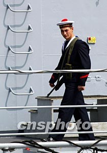 圖:參加中法軍演的海軍驅(qū)逐艦嚴(yán)陣以待