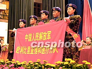 三月十四下午,南京軍區(qū)在福建省福州總醫(yī)院隆重舉行赴利比里亞維和誓師歡送大會,首批三十五名醫(yī)療分隊官兵將于十六日起程前往利比里亞,為在那里參加維和的部隊官兵保障醫(yī)療10個月。作者:汪虎