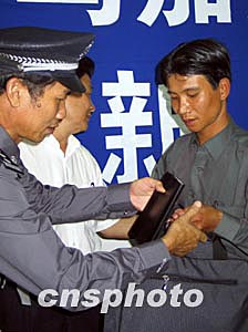 三月十六日下午,海南省公安廳在三亞市公安局舉行緝捕馬加爵獎勵舉報人新聞發(fā)布會,三亞市民陳賢壯因舉報有功獲得公安部獎金20萬元,及三亞市委、市政府獎金5萬元。作者:關向東
