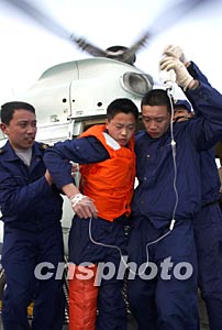 中國海軍在三月十六日的中法聯(lián)合軍事演習中成功救助“傷員”。中新社記者:宋吉河