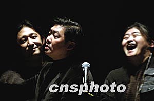 三月十八日下午,劉歡在首都體育館進(jìn)行其首次個(gè)人演唱會的彩排,十九日晚,演唱會將如期舉行。著名指揮余隆將指揮中國愛樂樂團(tuán)為劉歡伴奏。三寶、余隆、劉歡(從左倒右)在彩排現(xiàn)場一臉輕松。作者:高遠(yuǎn)