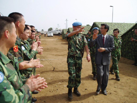 歡迎儀式結束后,林大使在周紹瑞參謀長及中國維和部隊各分隊領導的陪同下,視察了中國維和部隊營地,并看望了各級指戰(zhàn)員。