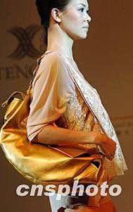 2004香港國際春季時裝材料展三月二十三日在香港會展中心開幕,展覽上設(shè)計師推出不同款式女士時尚手袋。中新社傳真 錢興強 攝