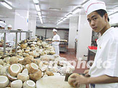 博鰲廚師正在剖新鮮椰子準備椰子菜。第八屆世界海南鄉(xiāng)團聯(lián)誼大會將于三月三十日在博鰲舉行。一千六百名海外瓊籍鄉(xiāng)親將參此盛會。博鰲亞洲論壇會議中心所在的博鰲索菲特酒店精心推出海南特色菜肴,款待鄉(xiāng)親。作者:王辛莉