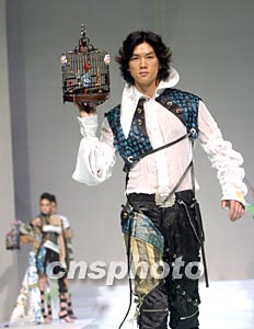 三月底,在北京舉行的中國國際時裝周的T字舞臺上,謝淑凌的時裝作品《中國風》再現(xiàn)老北京風情。中新社記者:史利