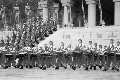 往年鳴放禮炮34響將改為“鳴鐘9響擊鼓34咚”(“9”是中華民族傳統(tǒng)最高禮數(shù),“34”代表全國(guó)34個(gè)省、市、自治區(qū)、特別行政區(qū))。所擊的一口2.73噸的金代大鐵鐘已在殿前懸架完畢。(韓宏)