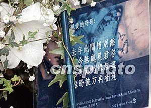 四月一日,是一代歌星張國榮逝世一周年紀念日,許多香港歌迷來到張國榮墜樓的酒店前,獻上一束束鮮花悼念張國榮。中新社記者:錢興強