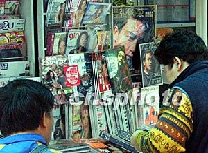 為悼念一代歌星張國榮逝世一周年,香港街頭眾多報刊紛紛推出紀念張國榮有關讀物及畫冊。中新社記者:錢興強