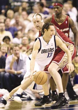 中新網(wǎng)4月1日電 諾維茨基和納什昨天雙雙發(fā)威,率領(lǐng)達(dá)拉斯小牛隊(duì)以126:109頂翻了克里夫蘭騎士隊(duì),也為本隊(duì)拿到了一張季后賽入場(chǎng)券。沒有了埃弗森的費(fèi)城76人隊(duì)繼續(xù)“當(dāng)家作主”,以95:71結(jié)束了金州勇士隊(duì)的7連勝狂奔。