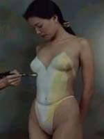這一次的人體彩繪創(chuàng)作是要上翡翠雜志的封面,也是我第一次上雜志封面,聽(tīng)明誠(chéng)老師說(shuō):這也是中國(guó)雜志第一次以人體彩繪作封面。我聽(tīng)了也很高興,所以我第二次的人體彩繪創(chuàng)作,也是有彩繪老師莊明誠(chéng)表現(xiàn)“豹女”的作品。