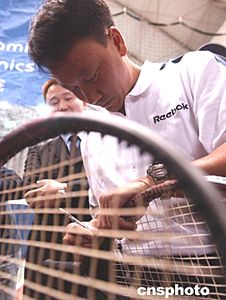 四月三日,美籍華人網(wǎng)球明星張德培應(yīng)北京和睦家醫(yī)院之約,來(lái)到嘉里健身俱樂(lè)部網(wǎng)球中心慈善演講。此次活動(dòng)的門(mén)票收入全部捐獻(xiàn)給美國(guó)教育健康基金會(huì),用于幫助中國(guó)貧困地區(qū)醫(yī)療衛(wèi)生事業(yè)和孤殘病患兒童。作者:賈國(guó)榮