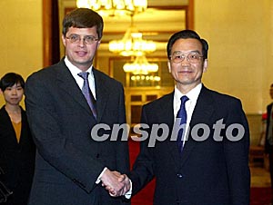 溫家寶說,中荷關(guān)系發(fā)展有許多有利條件,不存在任何政治障礙。